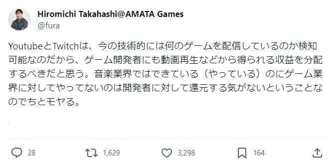 【正論】ゲーム開発者「ゲーム配信の収益は作り手にも分配するべき」←これwwwww