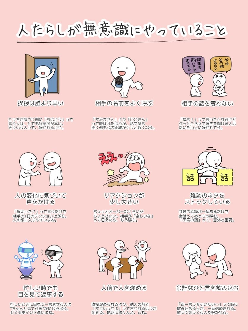 【画像】コミュ強が無意識にやってること、イラスト化される。これをマネすればいいのか?
