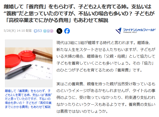【悲報】離婚後の養育費支払い、3割以下で終わる!こどもの生活崩壊。日本人は薄情なんか…?
