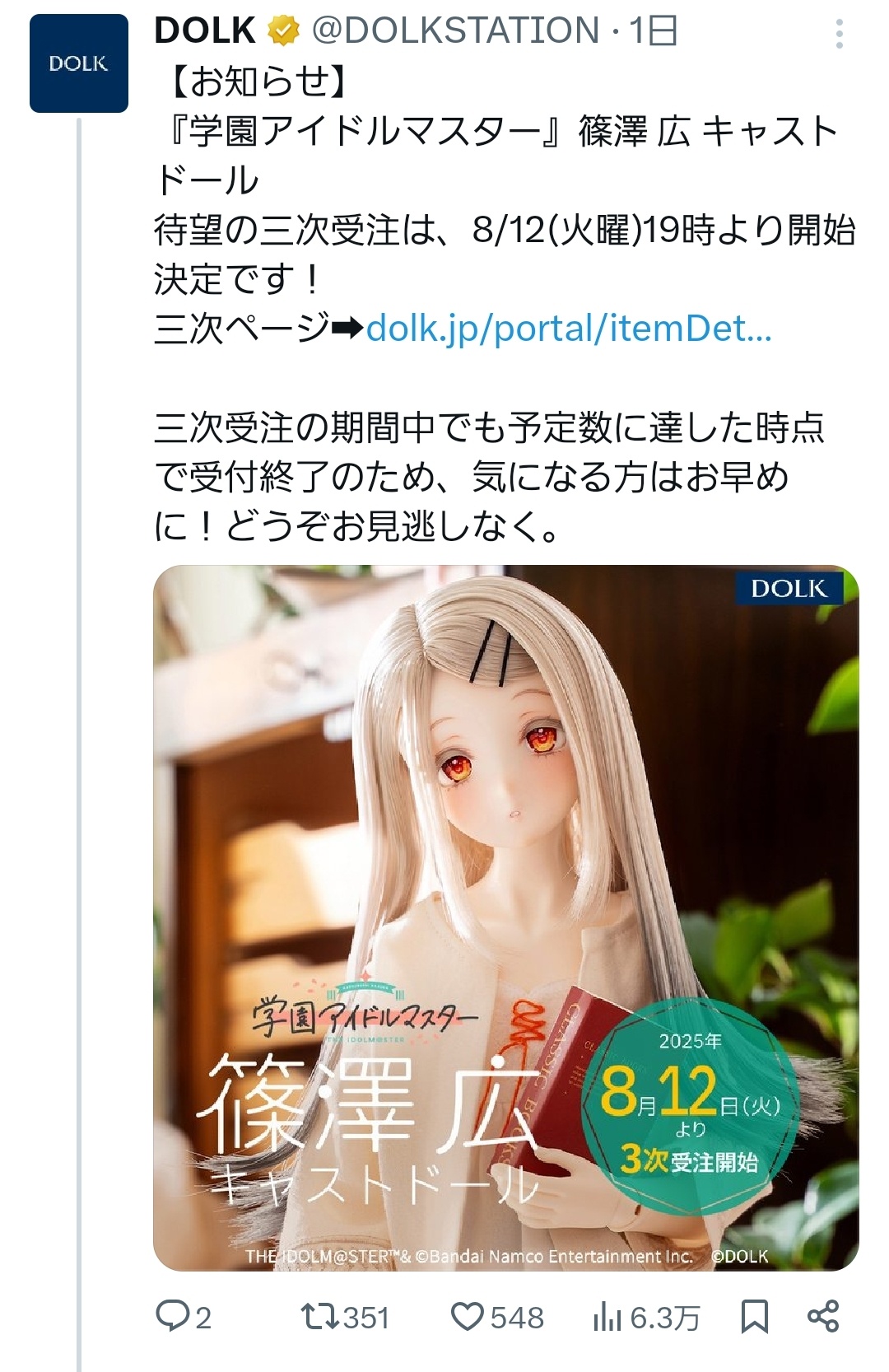 【朗報】人気ゲームのドール、15万円もするのにめちゃくちゃ売れるwwww