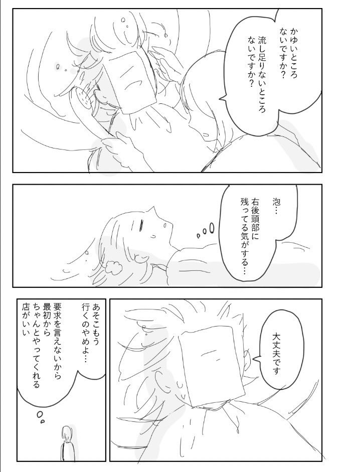 【画像】この漫画の美容師「…流し足りないとこありますか?」女さん「もうこの店は使わない」ブチギレ