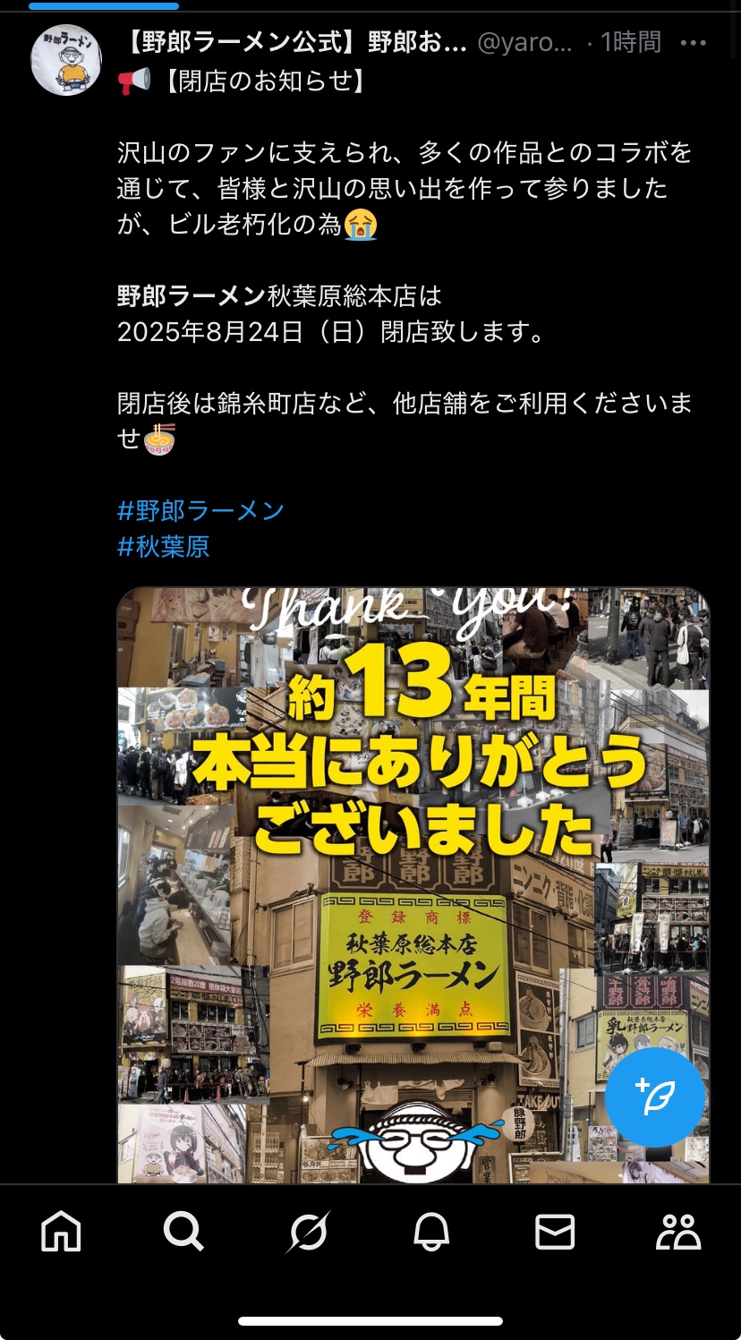 【悲報】オタク御用達、秋葉原の人気ラーメン店が閉店へwwww
