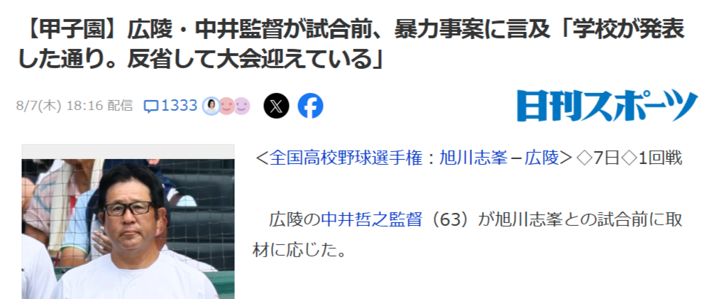 【悲報】例の野球部の監督、お気持ち表明「反省してこの大会を迎えてる」