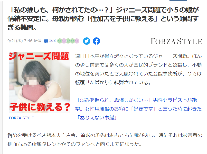 【悲報】小5女子、ジャニーズ問題で脳を破壊される「私の推しも、何かされてたの…?」