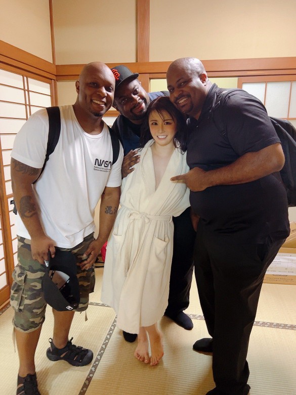 【画像】セクシー女優「男優さん3人と記念撮影」パシャ ←写真の破壊力凄くて草wwww