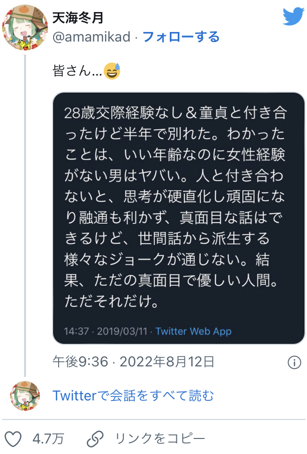 【悲報】アニメアイコン女子「恋愛経験ゼロの28歳男性と付き合って分かったこと言います。」