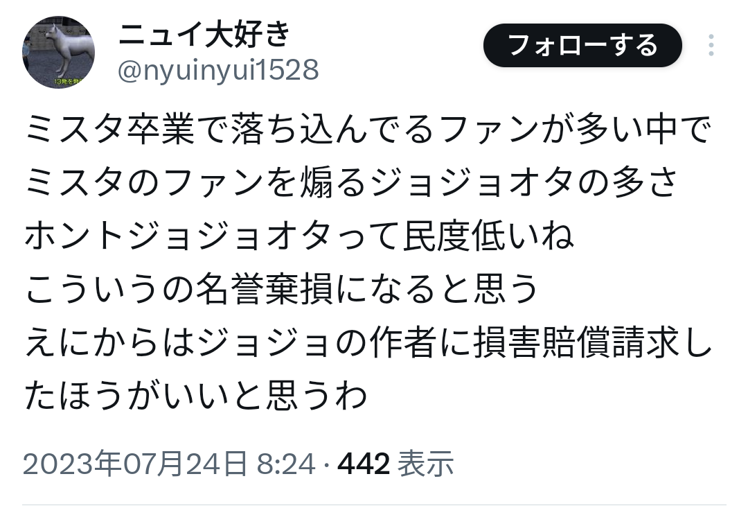 【悲報】バチャ豚さん、遂にジョジョ作者にブチ切れ「損害賠償を払え!」