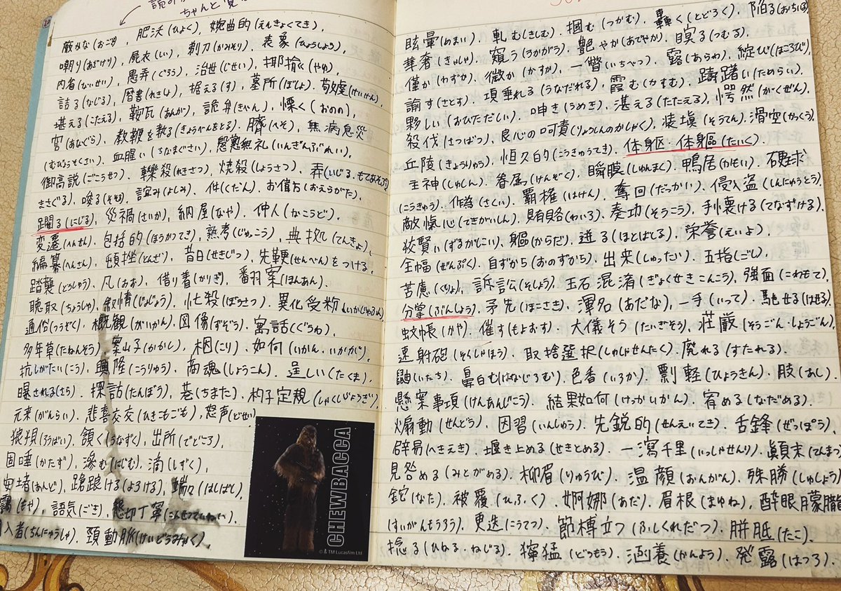 【画像】人気女性声優の「日本語学習ノート」、ガチで凄い。『成功する人間』はすべからく努力してるんだなwwwww
