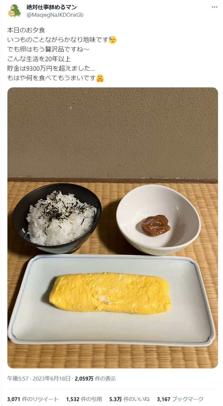 【画像】45歳で「貯金9300万」を貯めた絶対仕事辞めるマンの夕食、豪華すぎて草wwwwww