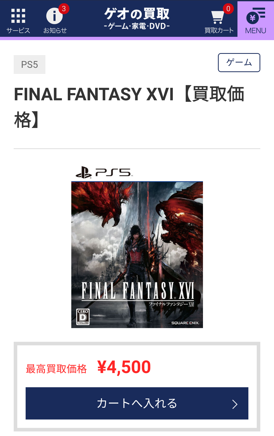 【悲報】FF16の「GEO買い取り価格」、ティアキンよりも安くなってしまう・・・