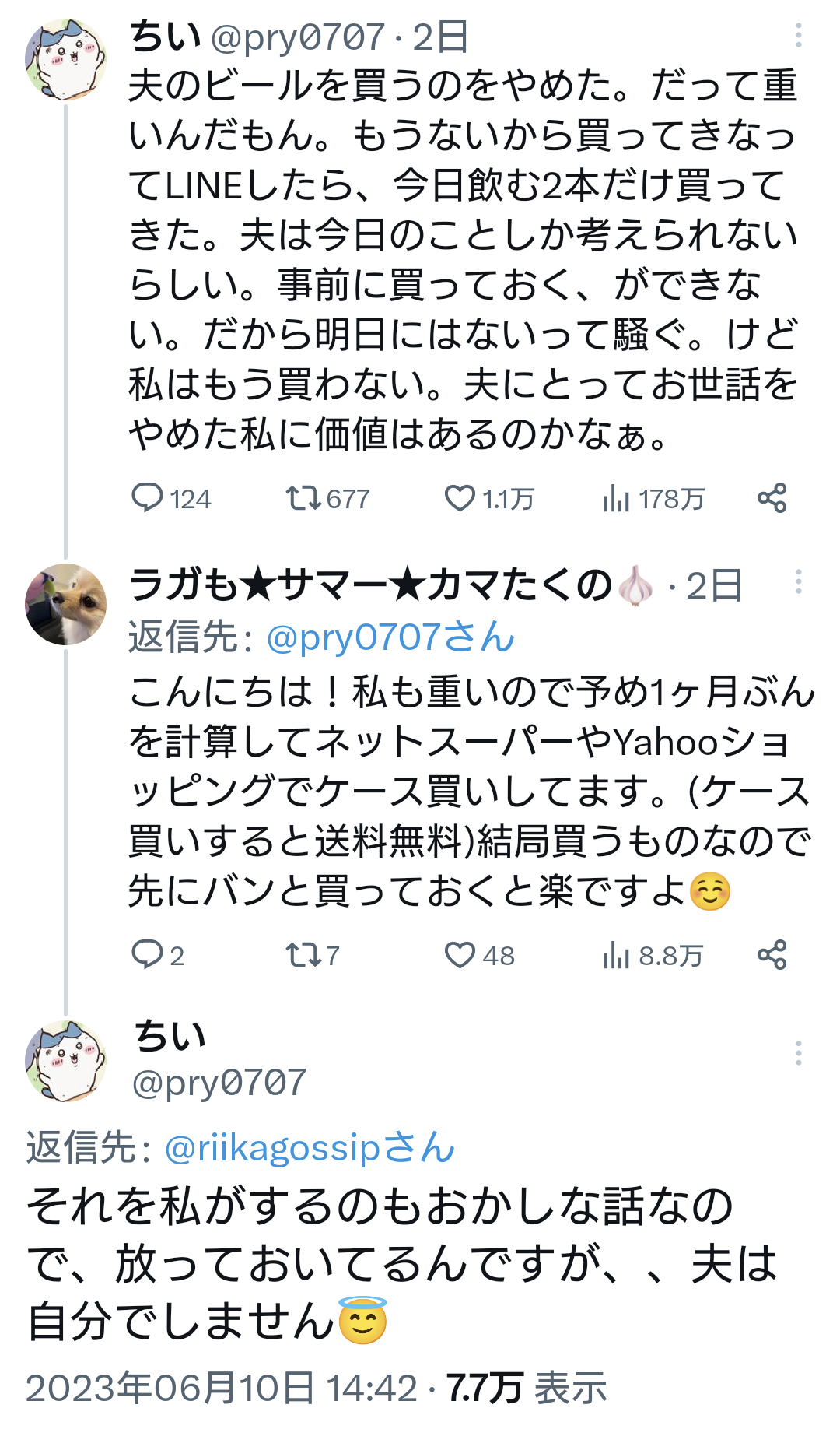 【悲報】アニメアイコン女さん「夫のビールを買うの辞めた、なぜなら重いから」←わかる