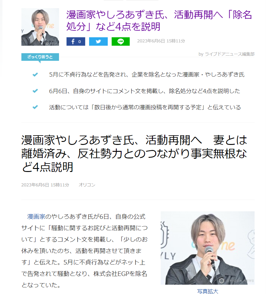 【朗報】漫画家やしろあずき、「警視庁監修漫画」を公開する模様。なお妻とは「離婚済み」が確定した模様wwwww