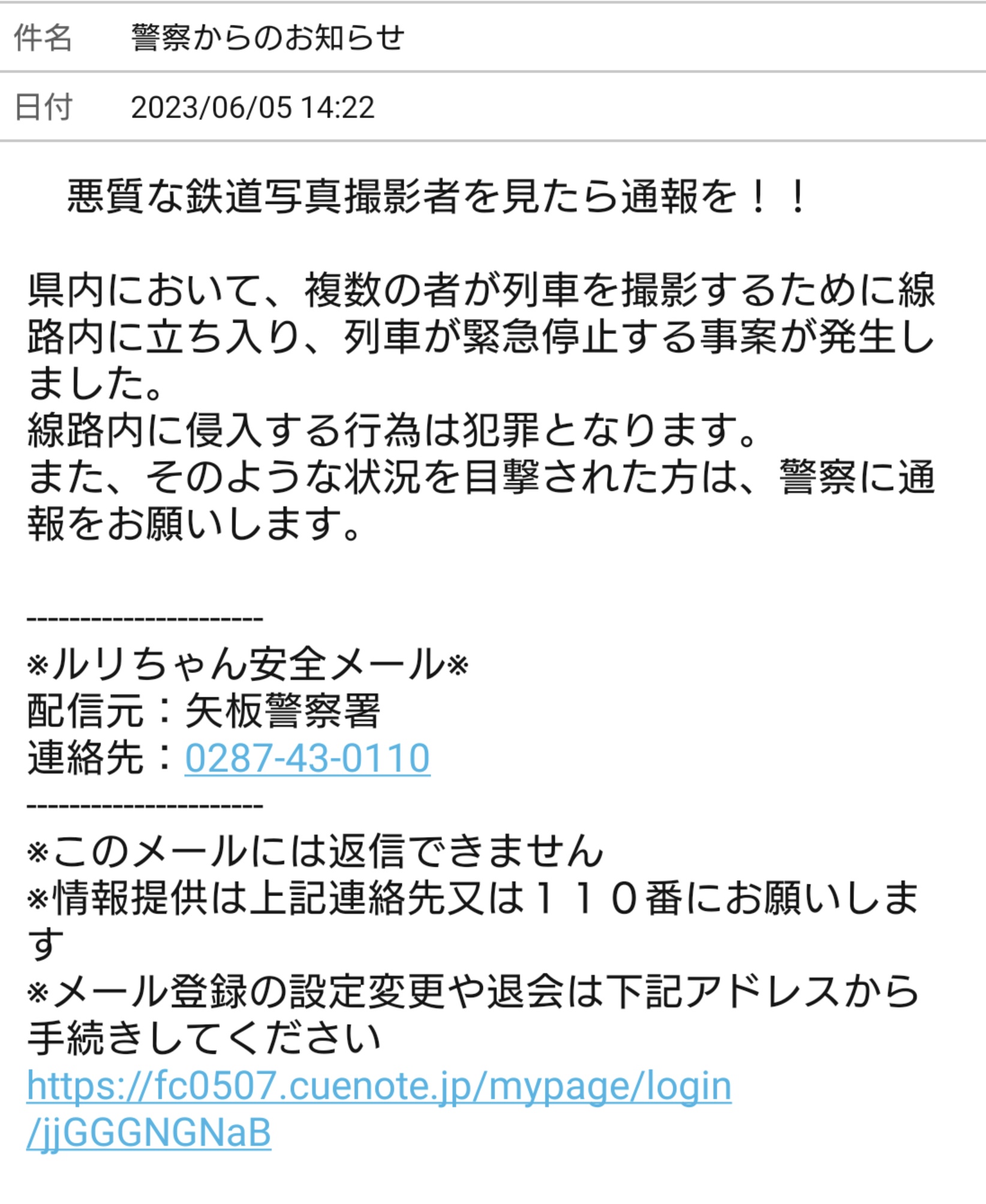 【画像】警察「悪質な『撮り鉄』を見かけたら110番してね!」ドンッ