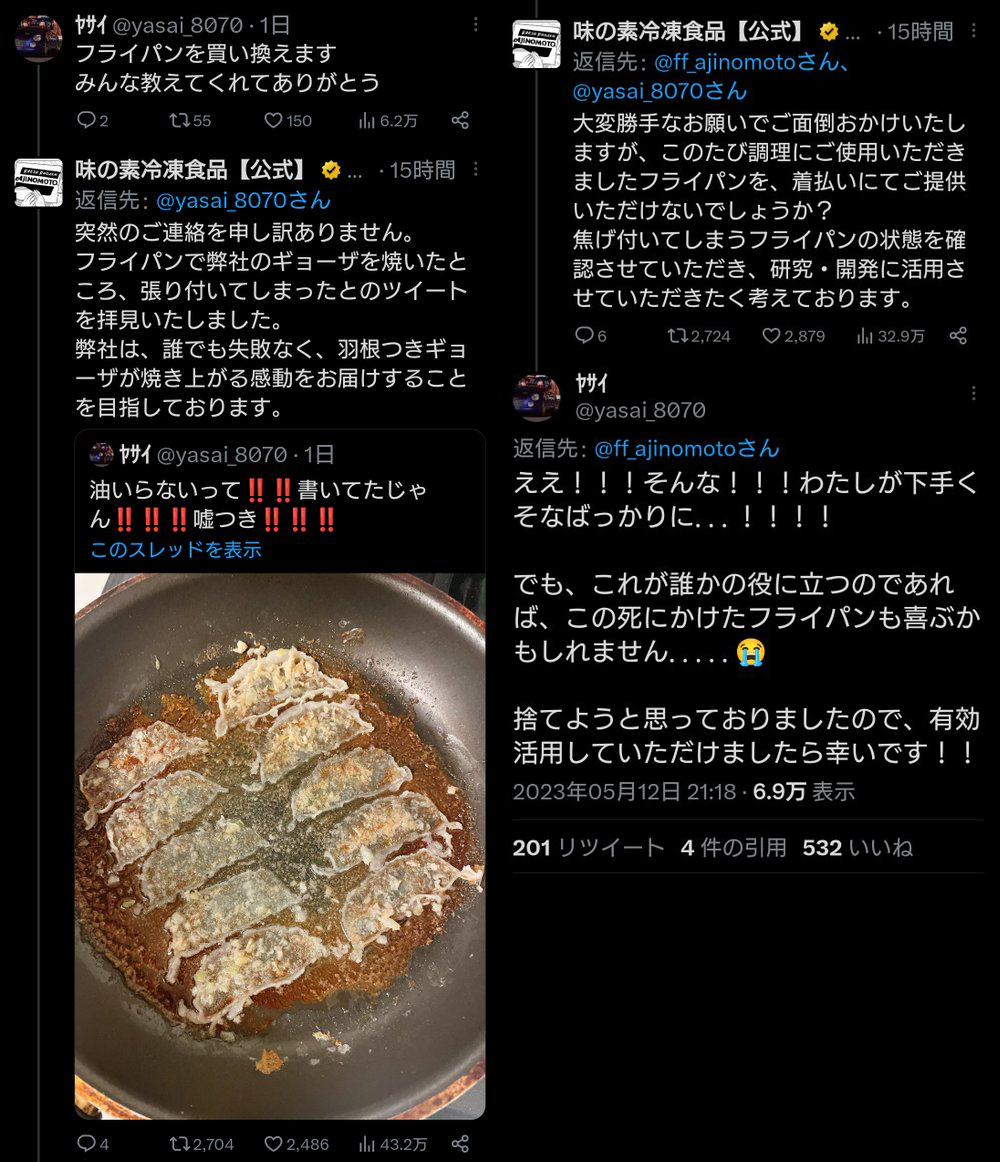 【悲報】冷凍餃子購入民「油いらないって言ったのに嘘つき!」味の素公式「なにっ!?シュババババ(走り寄ってくる音)」