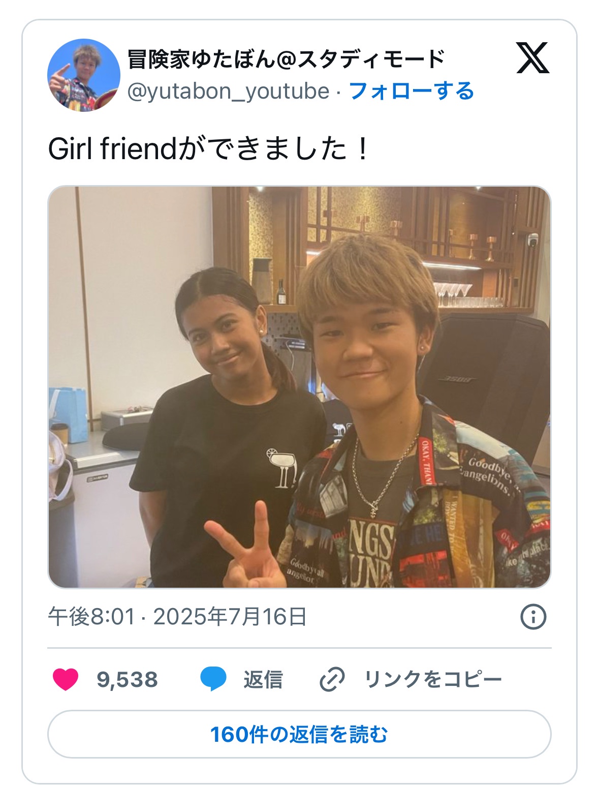 【画像】元不登校系YouTuber、留学先で彼女持ちへ。ツーショット写真がこちらwwwww