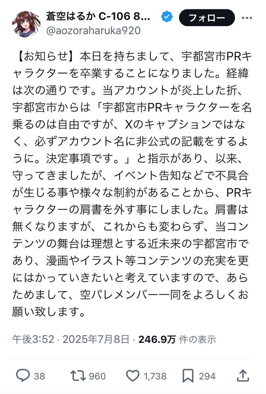 【悲報】萌えキャラ「宇都宮市のPRキャラを卒業します!」→ツッコミが殺到するwwww