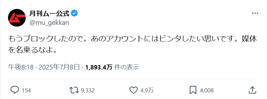 【悲報】月刊ムーの現役編集長、政治的投稿を連発してムー編集部からブロックされるwwww