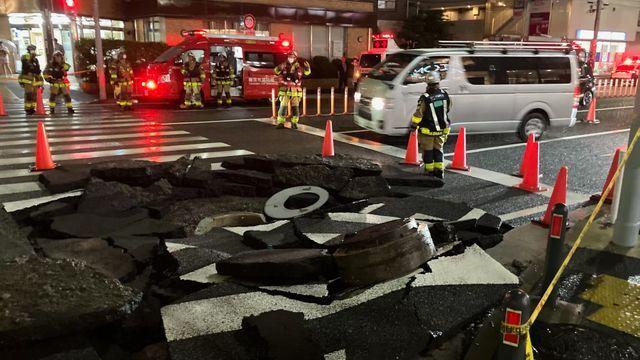 【画像】横浜、マンホールが吹き飛んで道路が陥没するwwww