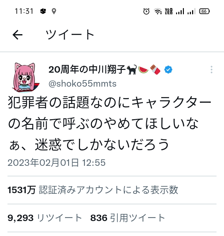 【朗報】中川翔子さん、ガチの正論「犯罪者の話題なのにキャラクターの名前で呼ぶのやめて欲しいなぁ」