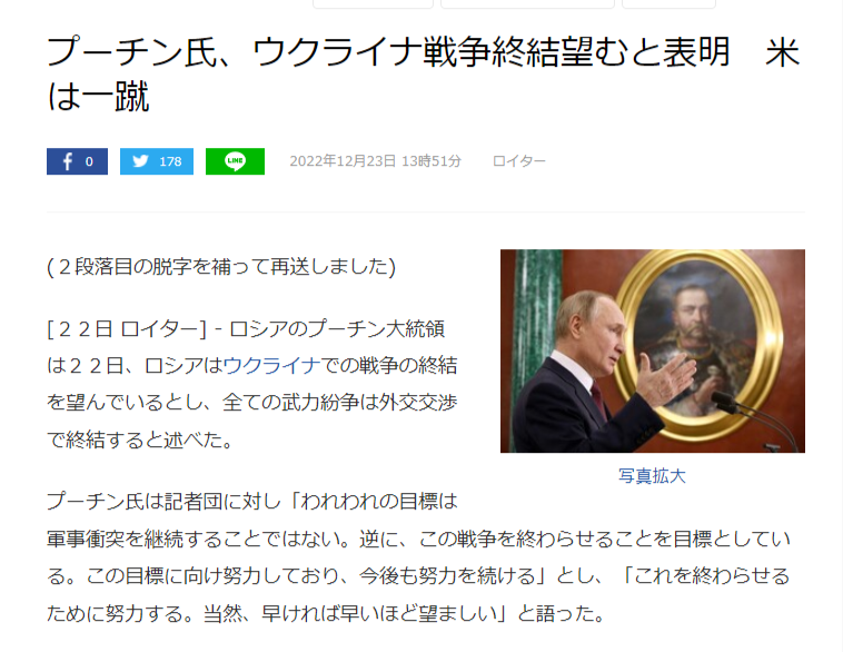 【悲報】プーチン「すまん…もう戦争やめへんか?このまま争っても両者損やんか」
