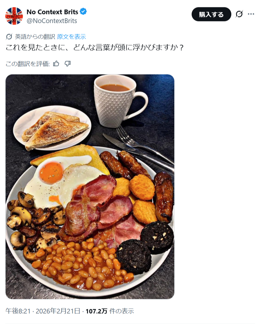 【画像】イギリスの朝食、あまりにも完成度が高すぎるwwww