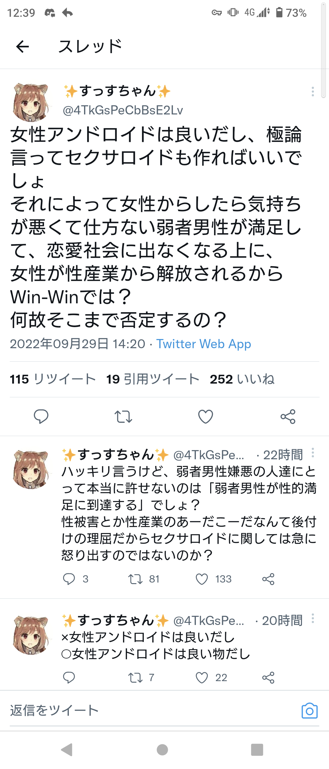 【悲報】アニメアイコン、『女性アンドロイド問題』に正論「気持ち悪い弱者男性が女に寄り付かなくなるのになんで否定するの?」