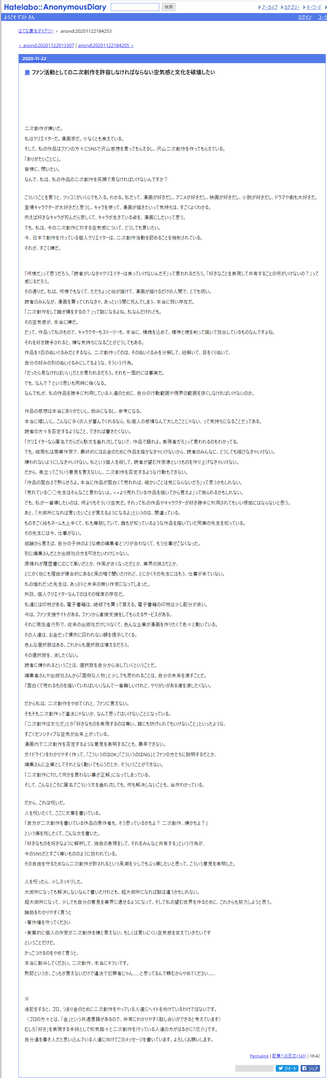 【悲報】漫画家の「二次創作が嫌い!」記事、今になり話題になるwwwww