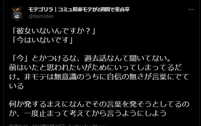 【悲報】女「彼女いる?」非モテ男「『今』はいないです」モテ男「…」