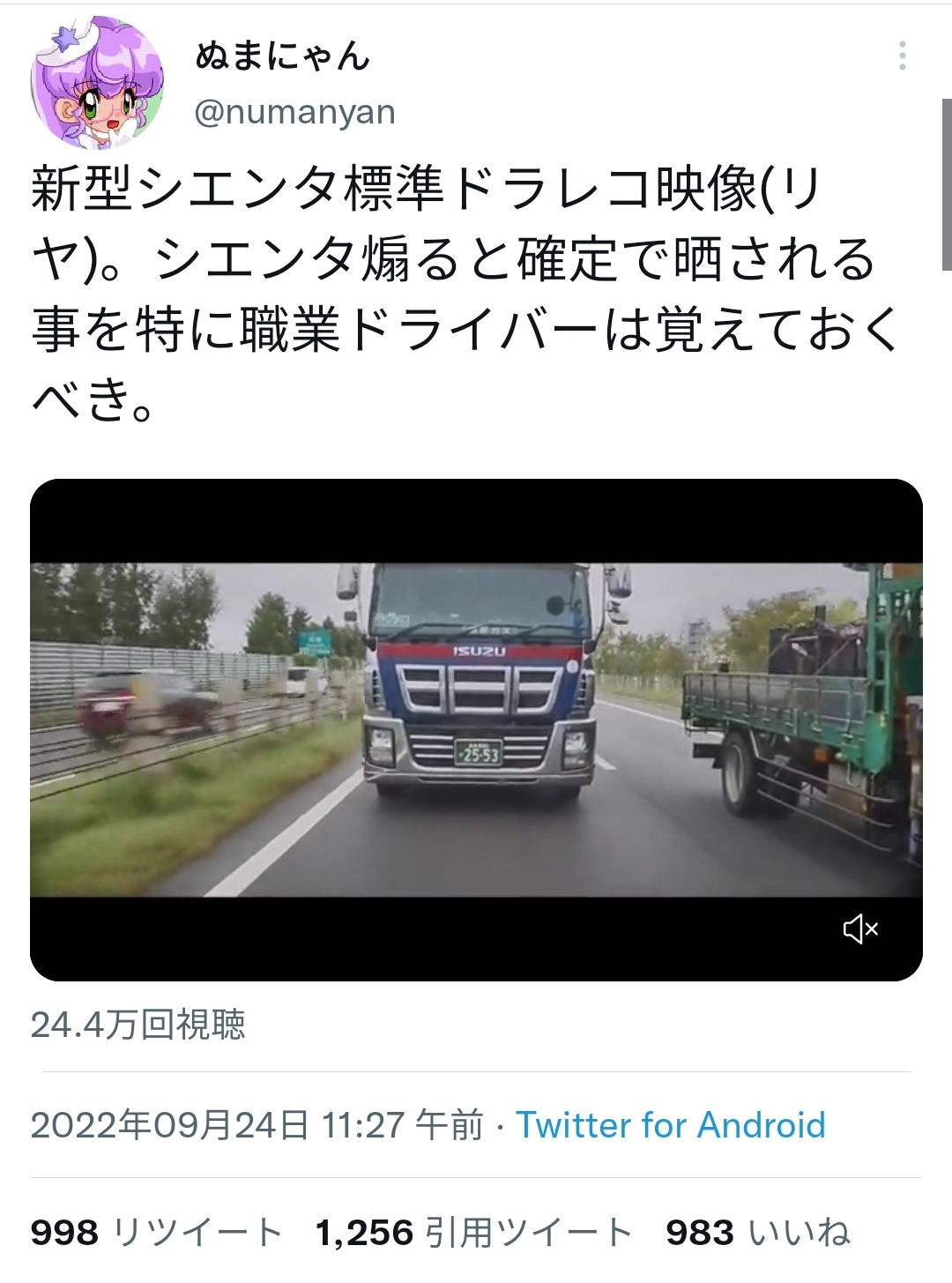 【悲報】アニメアイコン「高速で煽り運転された」パシャ→追い越し車線(100km制限)を80kmでチンタラ走行して事がバレて炎上wwww