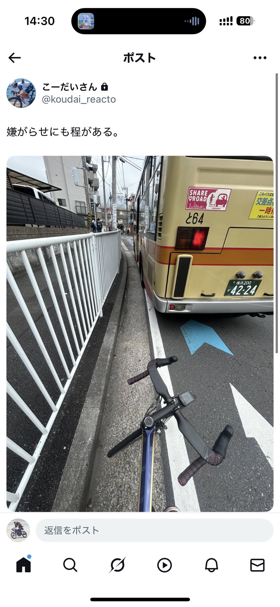 【画像】自転車乗り「バスに嫌がらせされた!」パシャッ