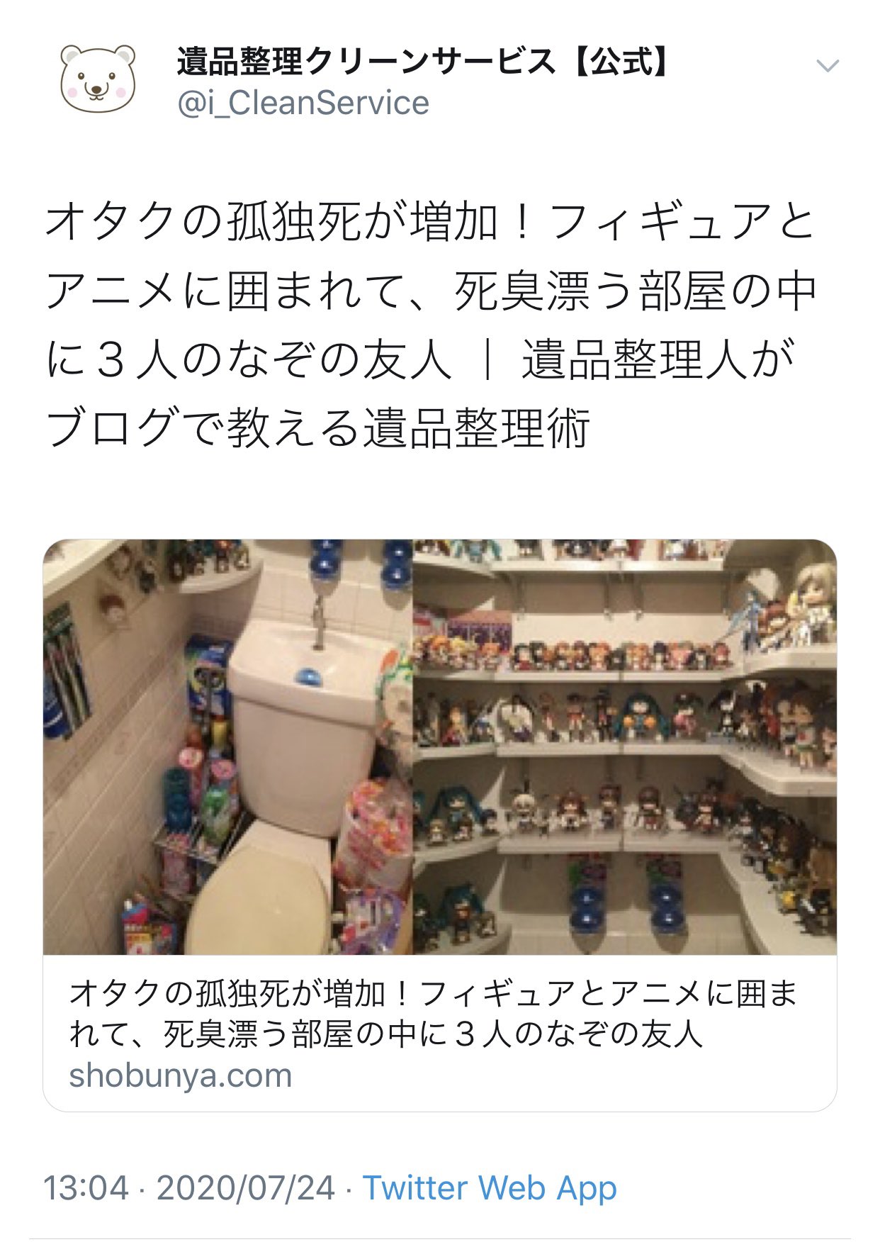 【悲報】遺品整理業者さん「オタクの孤独死w死臭w」→「女性の自殺…生きたかった感が伝わってきて残念…」