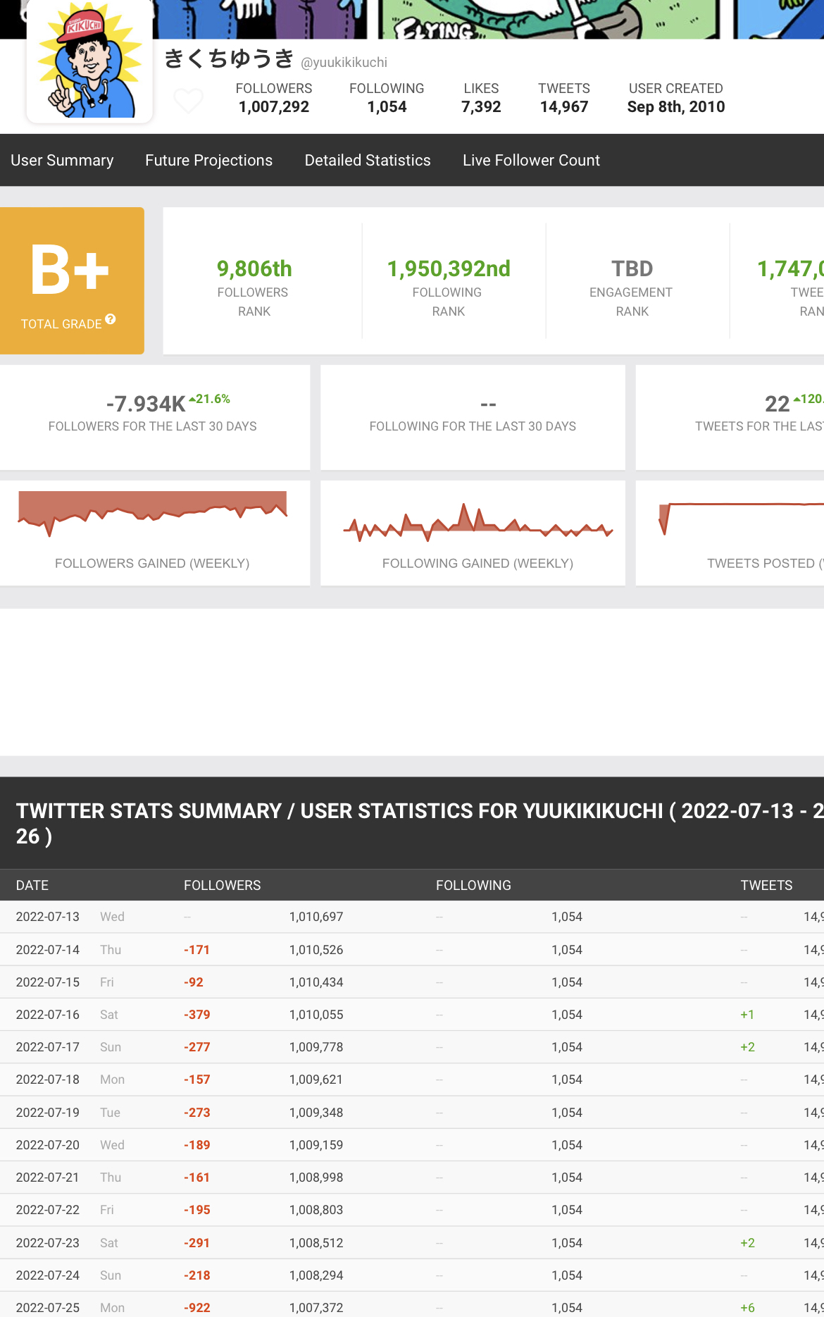【悲報】100ワニ作者さん、『フォロワー減少速度』が何故かまた上がるwwww