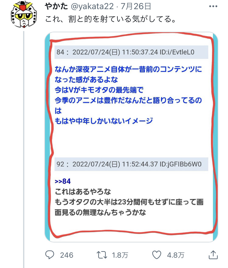 【悲報】オタク「深夜アニメはもう中年オタクの趣味、オタクの最先端は『VTuber』」→4.8万イイネ