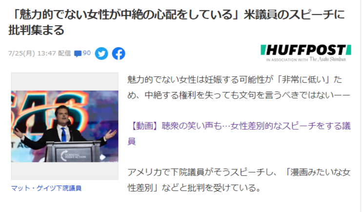 【悲報】議員さん、『漫画みたいな女性差別』で炎上「魅力的でない女性が中絶の心配をしている」「158センチで158キロくらい」