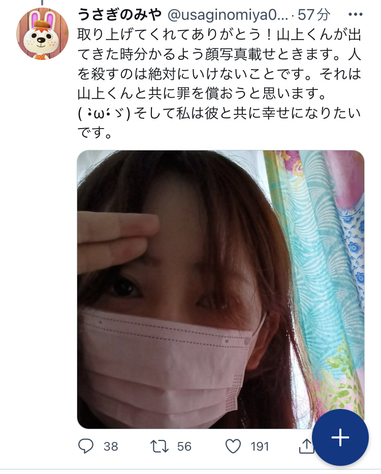【画像】山上銃撃犯『ガチ恋』女さん、顔面をセルフ開示するwwww