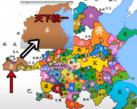 【画像】キングダムで有名な「秦」の位置、ガチで辺境すぎる。なんで統一できたんだよwwww