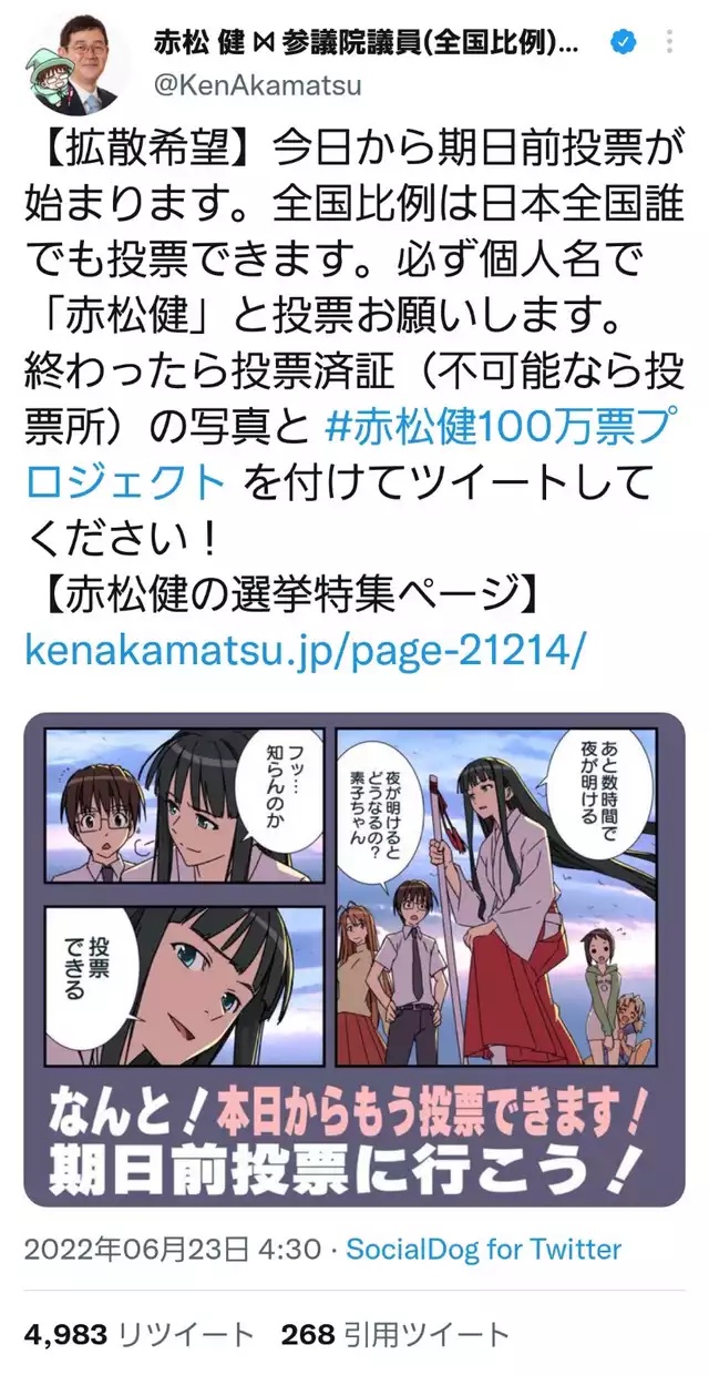 【画像】某有名漫画家「投票しよう!暗黒次元!」赤松健「…」