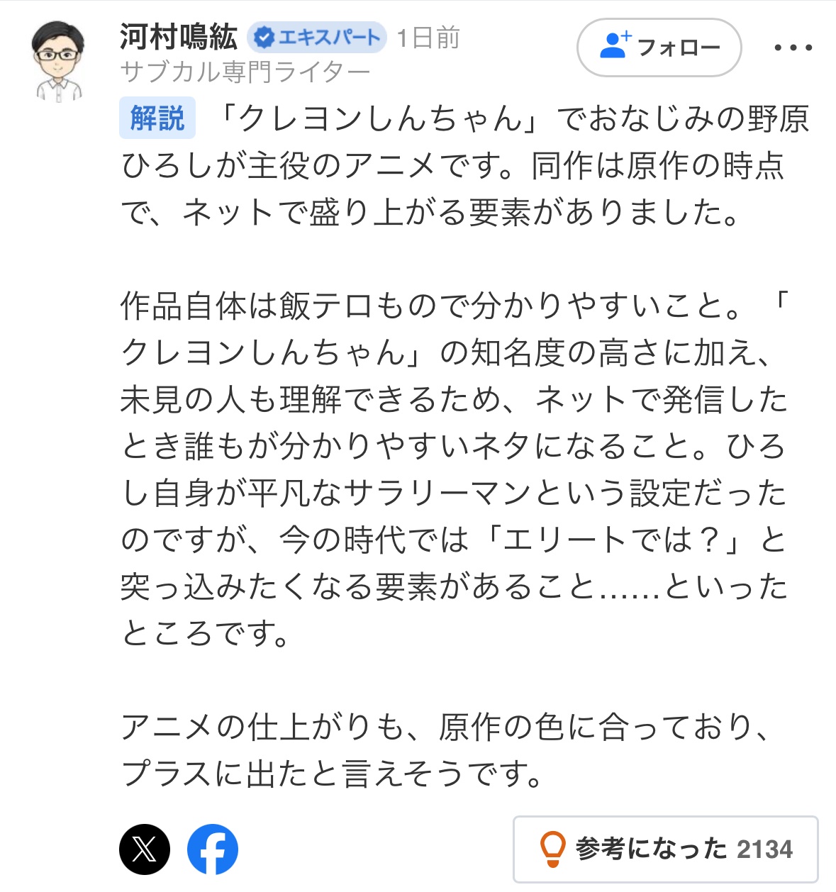 【悲報】ヤフコメのエキスパートさん、話題のアニメが人気になった理由を的確に分析するwwww