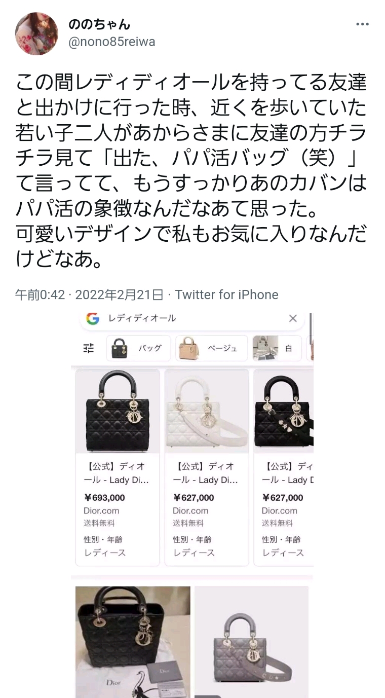 【画像】「パパ活を疑うべきバッグ」これらしい。お前らの彼女はまさか持ってないよな…?