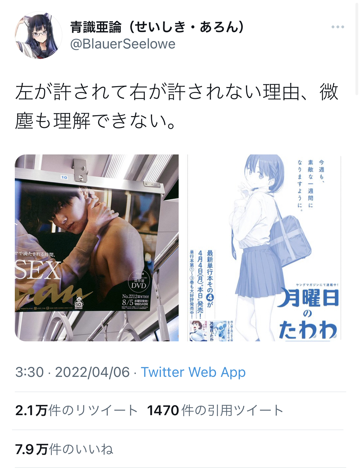 【悲報】漫画「月曜のたわわ」新聞広告問題、アニメアイコンが反論「左が許されて右が許されない理由、微塵も理解できない」パシャ