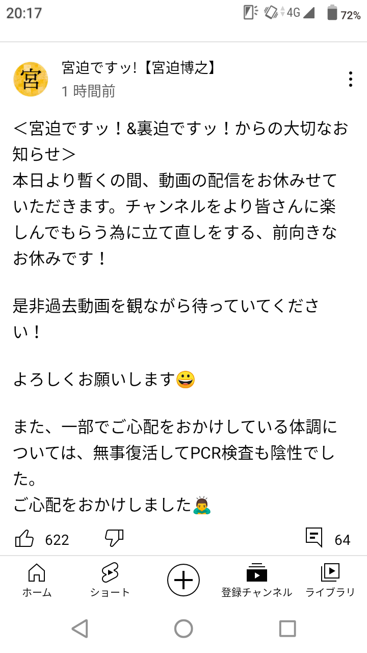 【悲報】宮迫博之さん、YouTubeの動画配信を休止してしまう…