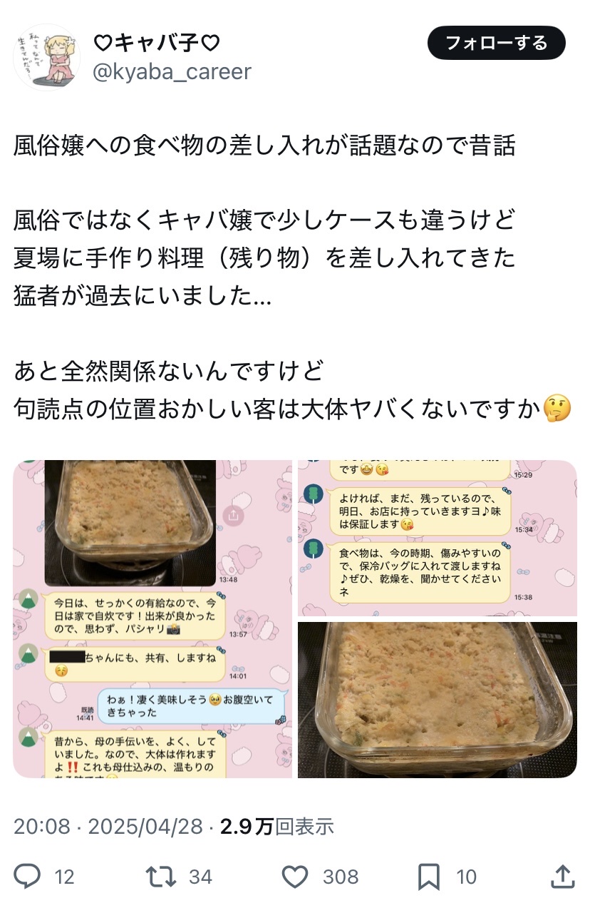 【画像】夜職嬢さん、客から「謎の料理」を差し入れられてドン引き→ネットに晒してしまうwwww
