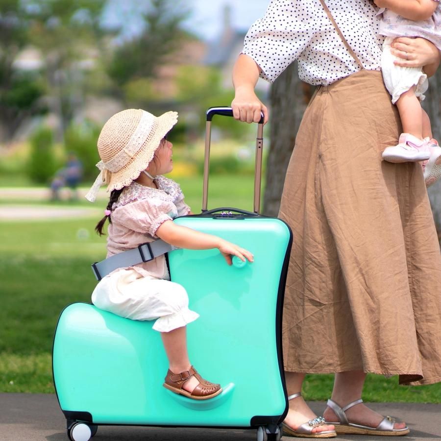 【画像】主婦「家族旅行は荷物が多くて大変…そうだ!子供をスーツケースに乗せちゃえw」と開発された商品がコチラwwww