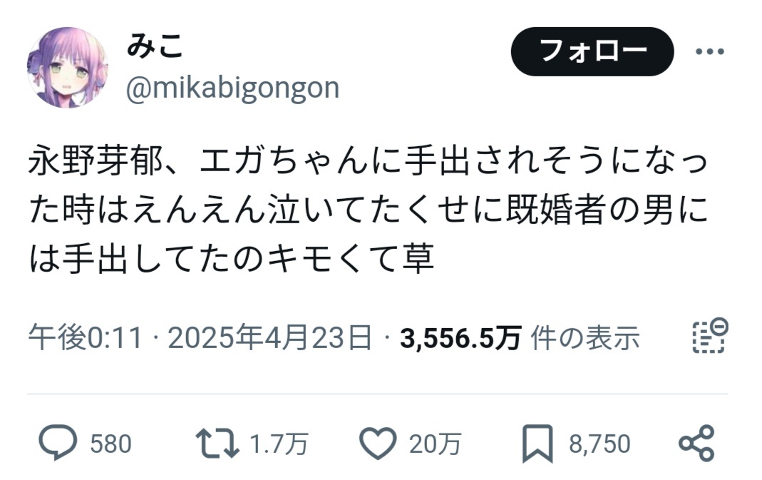 【悲報】アニメアイコン、文春砲を喰らった女優さんをボロクソに叩いてしまうwwww