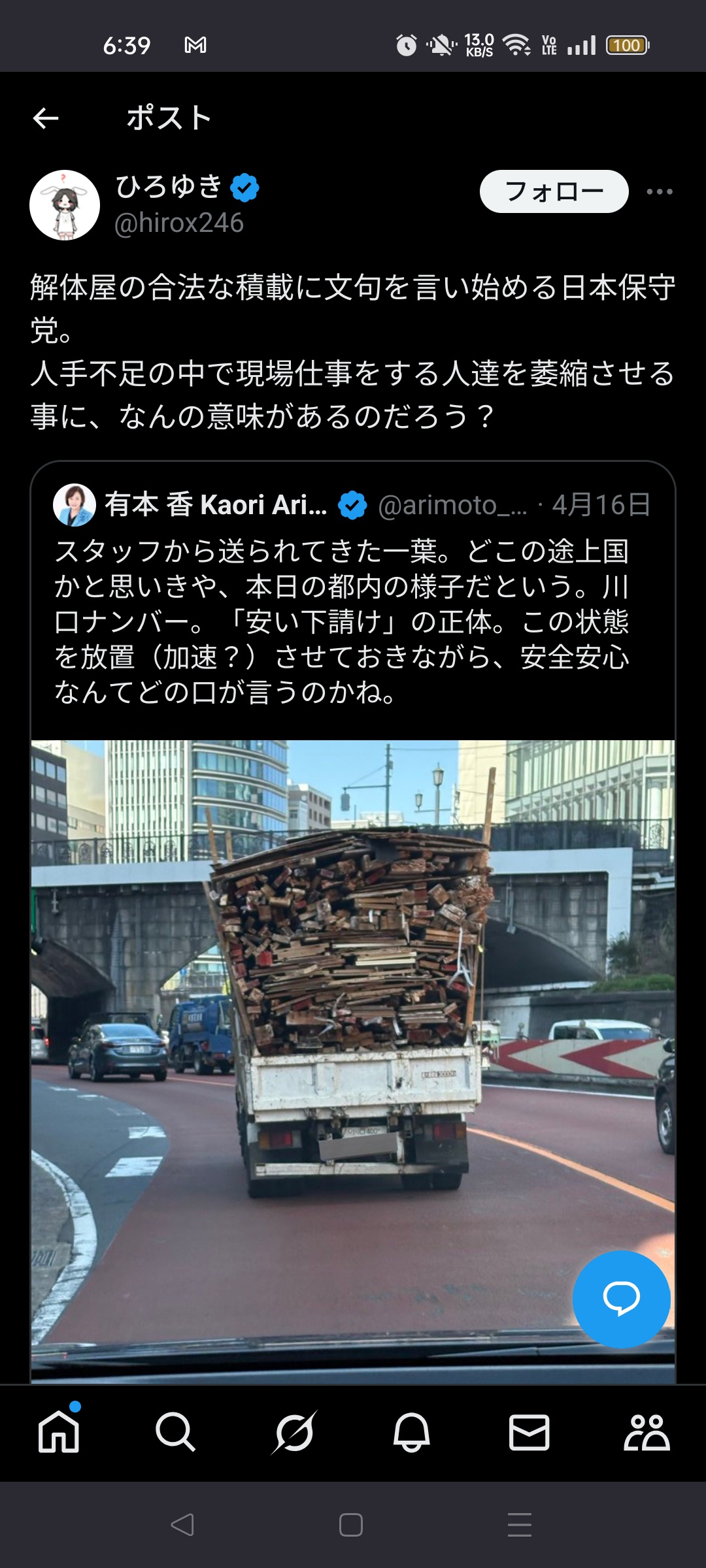 【画像】ひろゆき「この解体屋のトラックは合法」→合法か否かで議論になるwwww