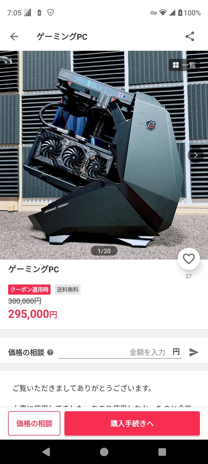 【画像】クッソかっこいいゲーミングPC、フリマに出品されるwwww