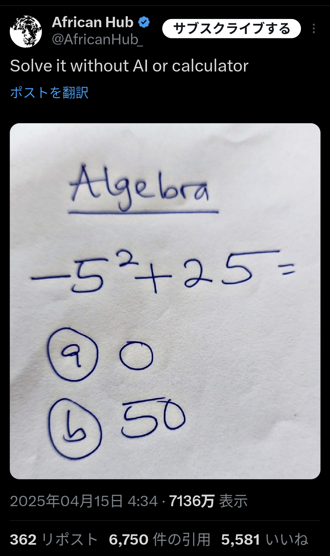 【画像】この計算問題、ガチで分からな過ぎて7000万インプレッションwwwww