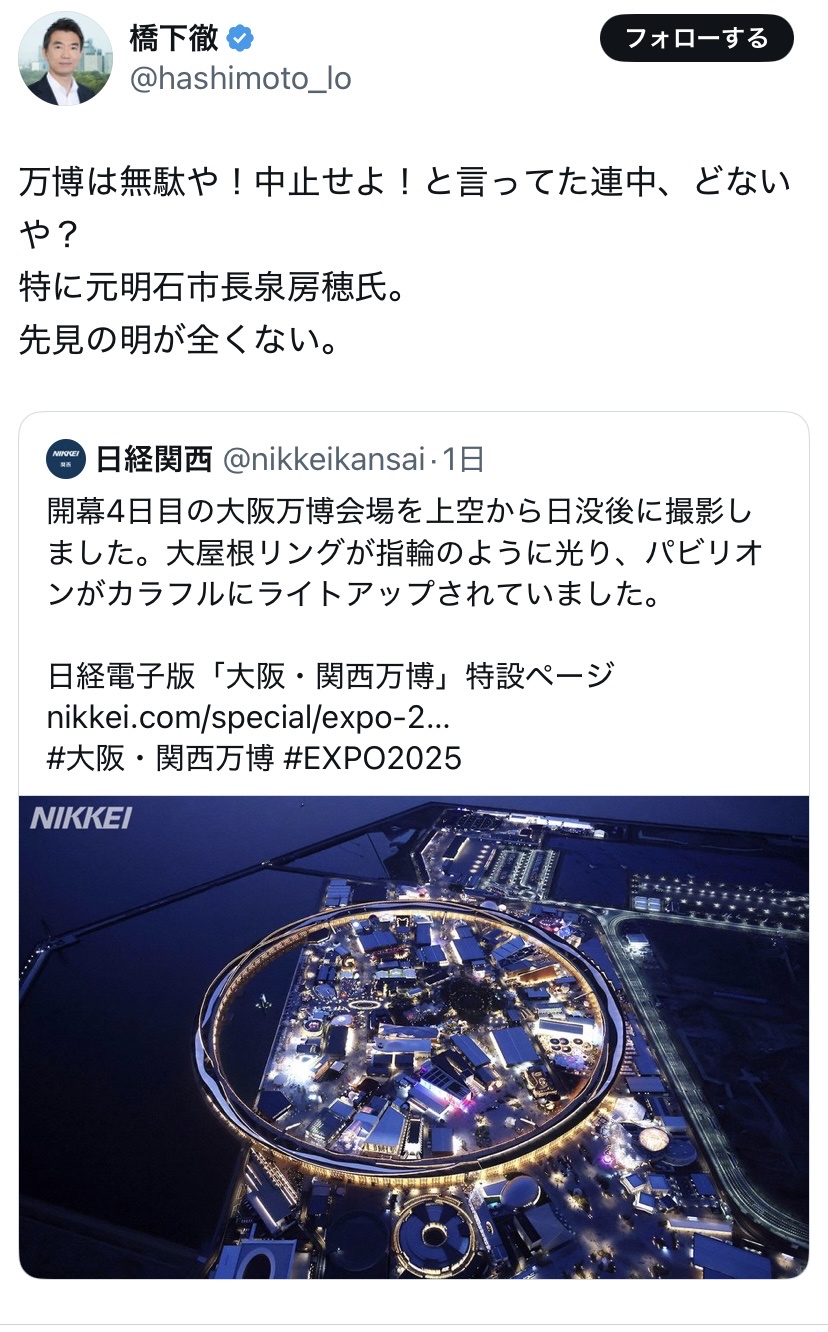 【悲報】有名弁護士「万博は無駄や!中止せよ!と言ってた連中、どないや?」