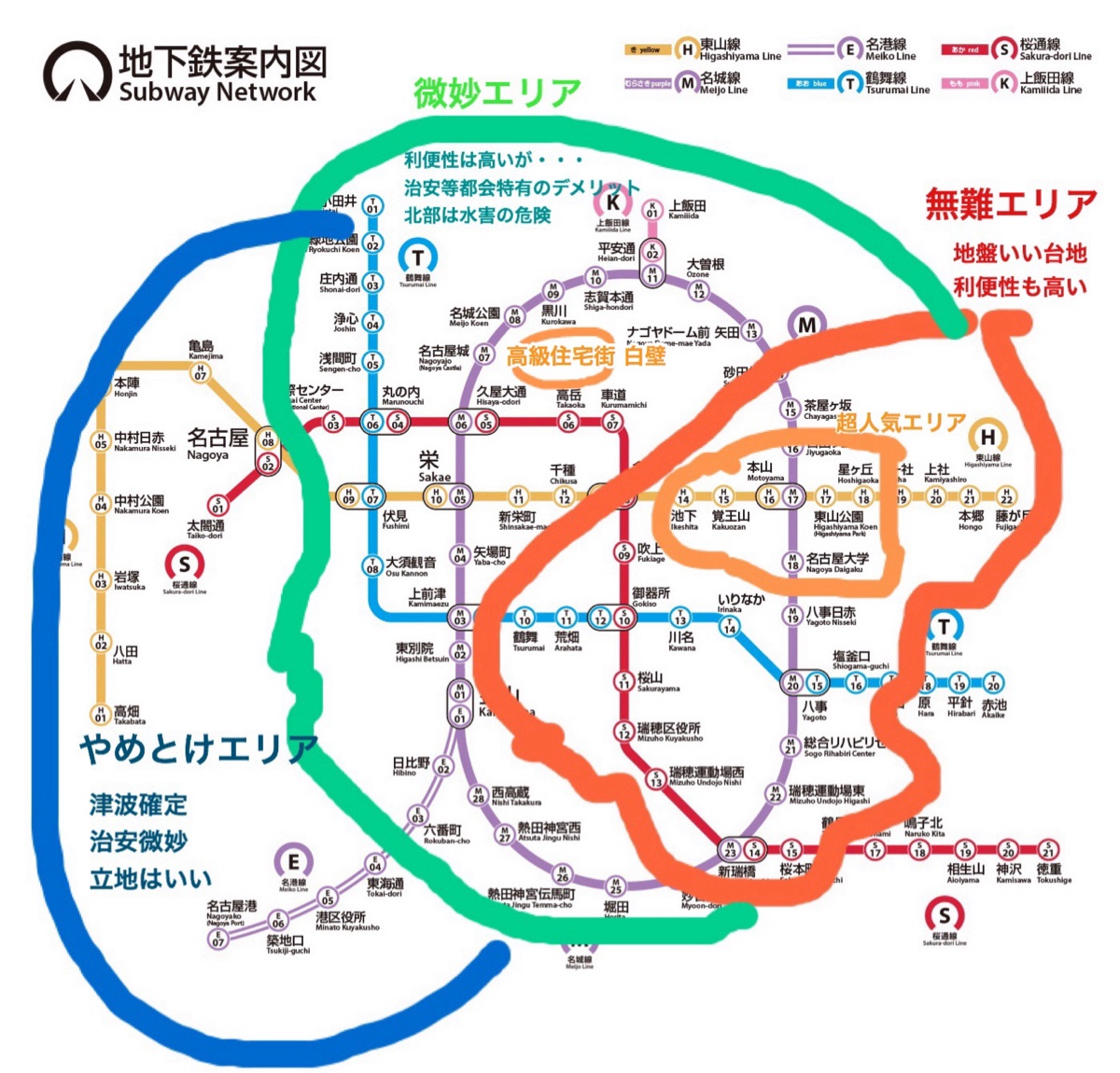 【画像】ネット民「名古屋で住んでいいエリアはこの範囲ですw」