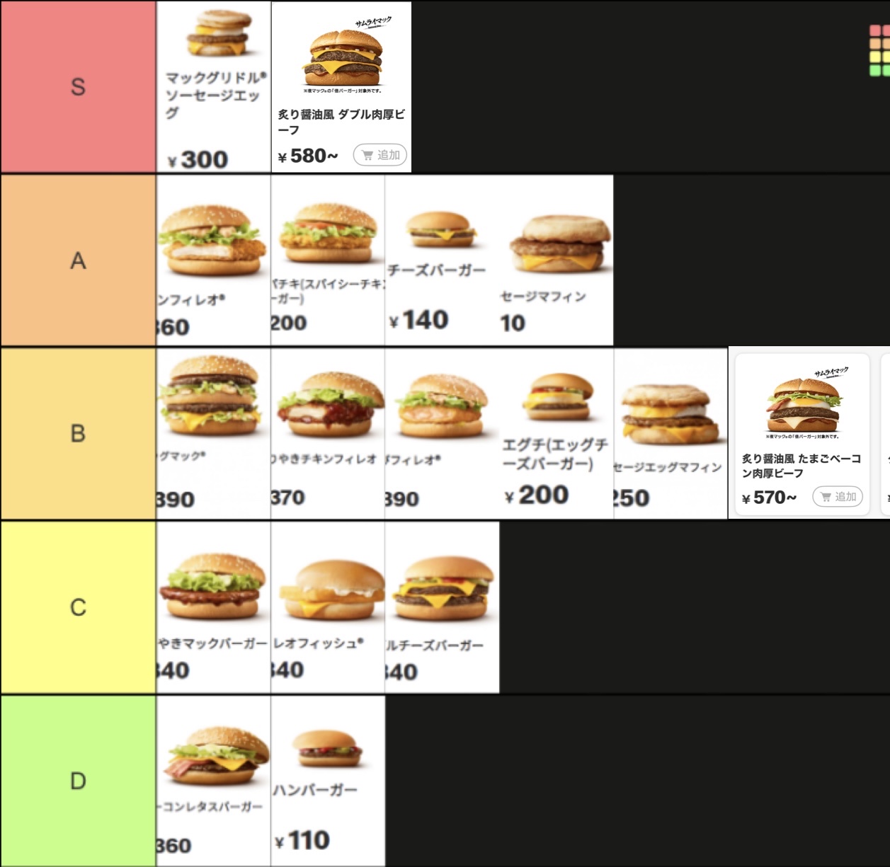 【画像】某人気ファストフードの「Tier表」を作ってみた結果wwww